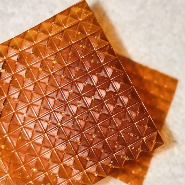 Translucent acid gel sheets with raised pyramid texture layered over vibrant comic book artwork in red, yellow, and blue tones"