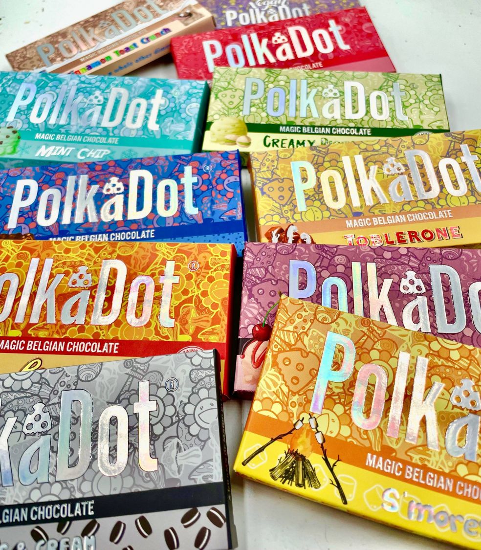 Polka dot magic Belgian chocolate bars are highly potent and boast four grams of magic mushrooms.